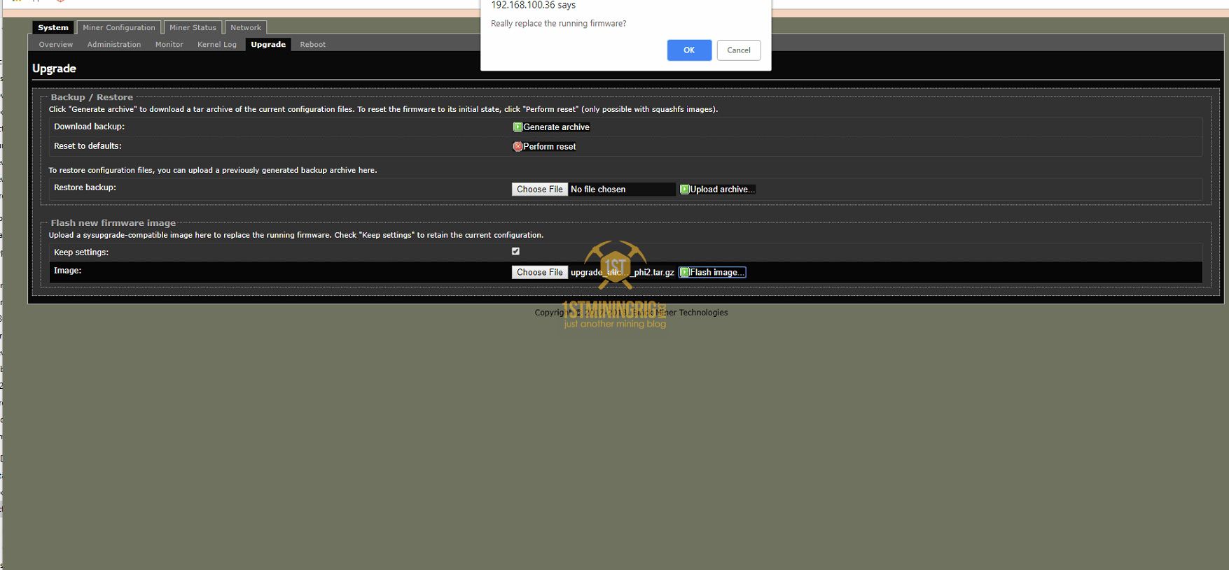 It’s a good idea to go to the password administration page and change it. To get there, go to the following tab: Miner Configuration -> Administration