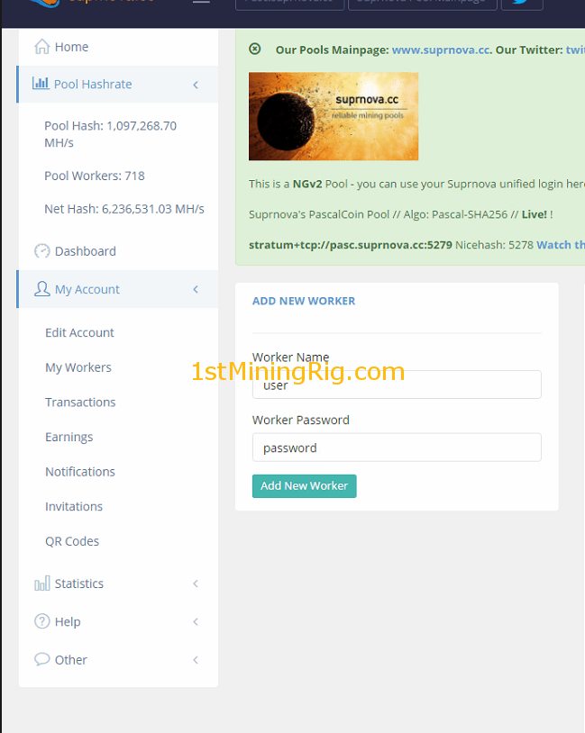 - For PascalCoin i will use https://pasc.suprnova.cc/, create an account with suprnova if you don’t have one yet/