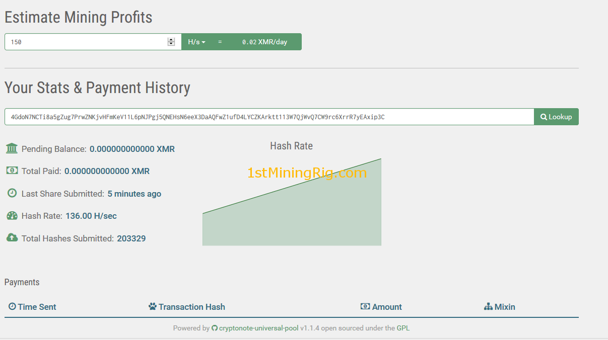 hii, when i enter my wallet adresse monerohash say “Not found”