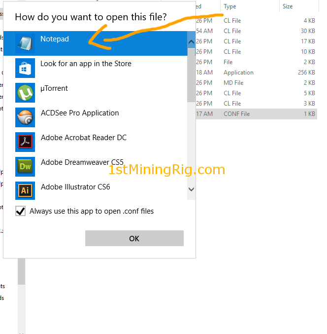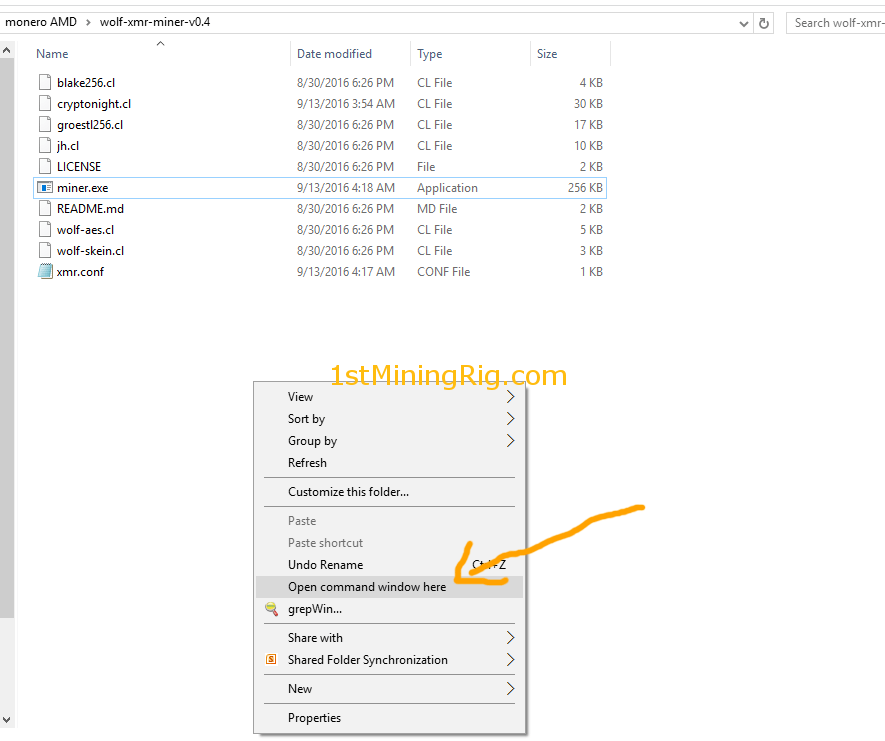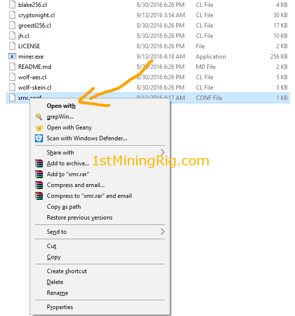 1 Download the mining software, this time we will be using Wolf’s OpenCL XMR Miner for AMD GPUs 2 Extract the contents from archive 3 Now open “xmr.conf” file with notepad. Hold “SHIFT” button then right click on “xmr.conf” and you will see at the top a new line “Open with“, click on that and then select “Notepad”Make sure you adjust you proper settings to xmr.conf file and also read carefully readme file !