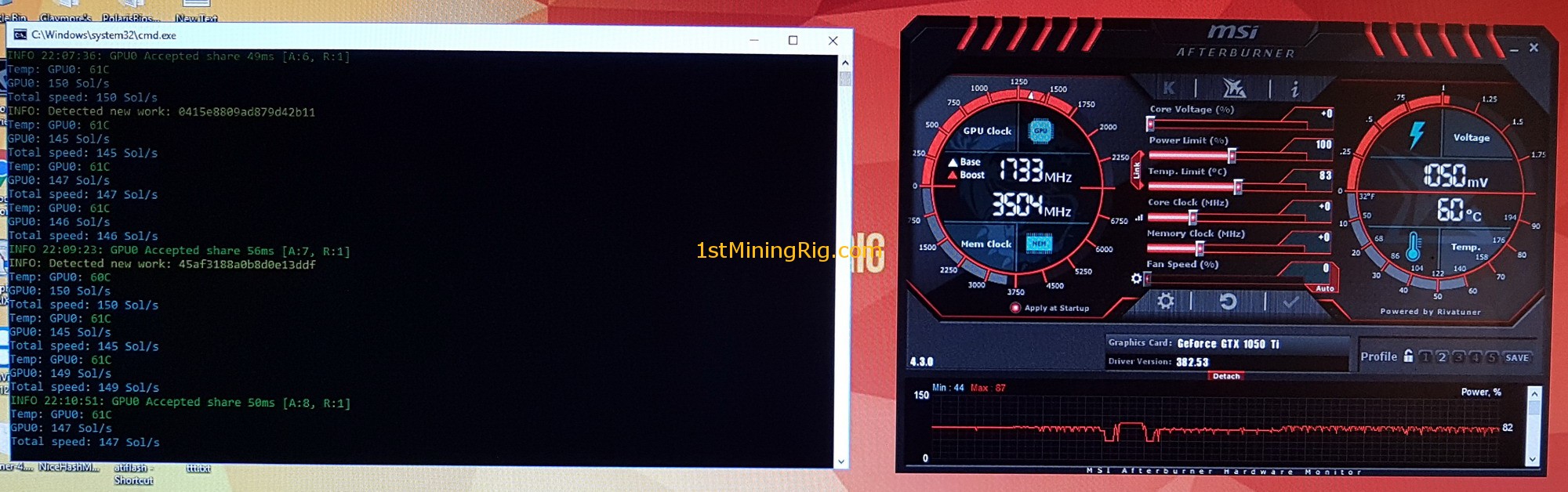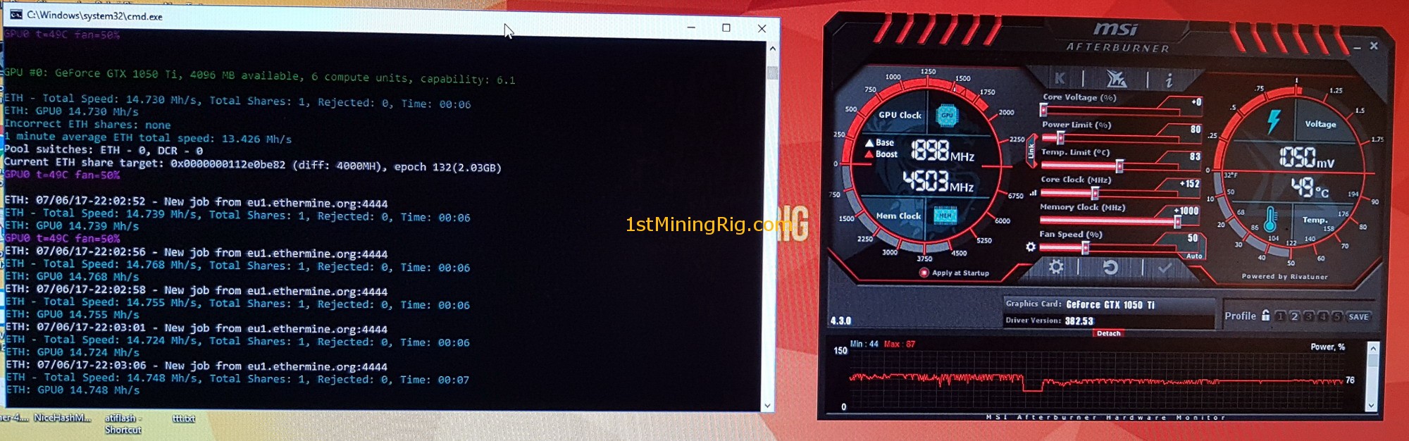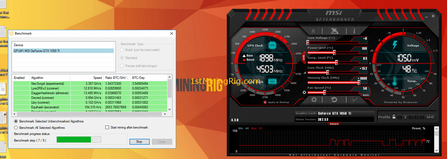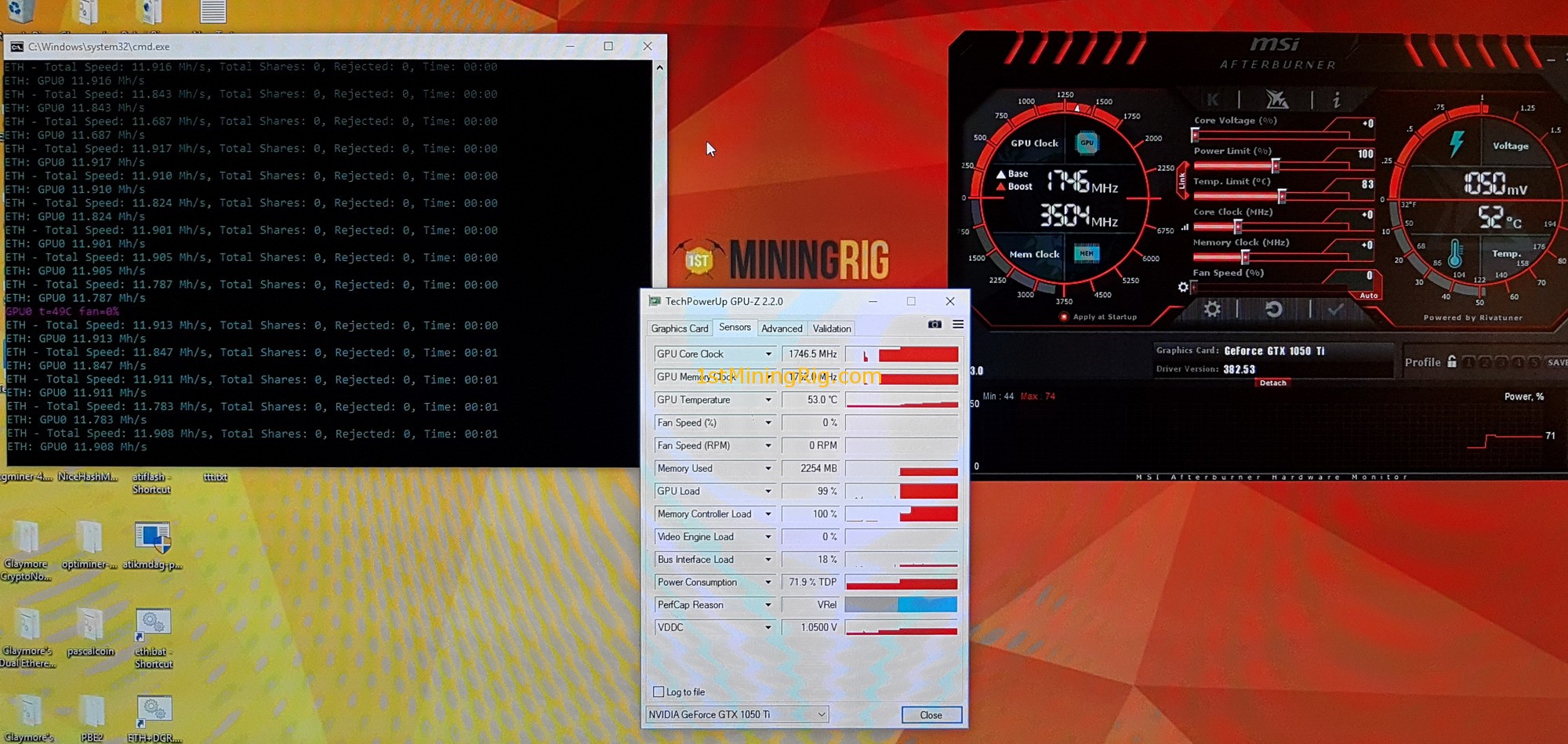 Setup #1 MSI GeForce GTX 1050 TI GAMING X 4G Mining Performance